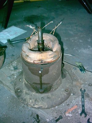 Den Motor bildet gewissermaßen das Fußgehäuse. Du möchtest die Feldspule des Motors entnehmen. Davon würde ich abraten, da ...