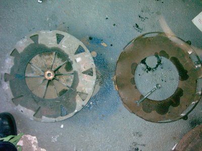 da hast Du Deine E57 ja schon ziemlich zerlegt. Rotor und Gitter düften eher mit Kunststoff (Polyamid) beschichtet gewesen sein, statt mit einer Pulverlackierung.