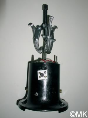 Dann habe ich mich noch mal an das untere Kugellager rangemacht. Mit zwei Drahtschlingen versuchte ich das Ding herauszuziehen, nachdem ich es vorher mit Eisspray eingesprüht hatte. Aber nix zu machen - bombenfest. Um nichts zu verschlimmbessern hab ich dann die Finger davon gelassen und es nur so gut es ging gereinigt und gefettet.