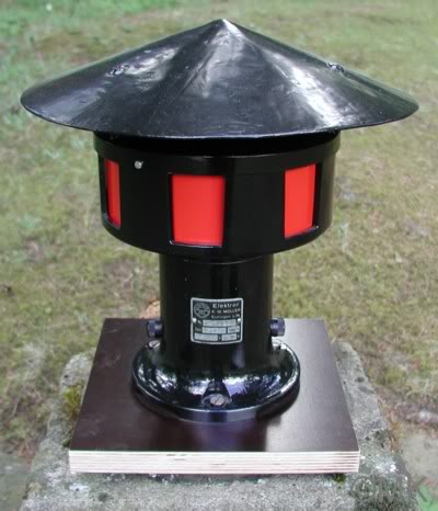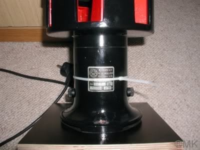 Und nun isse wieder komplett zusammengebaut. Und weil ich keine Abdeckkappe mit Zugentlastung für die Klemme habe, musste ich die Sirene auf eine Multiplexplatte montieren, damit das Kabel daran mit einer Schelle fixiert werden konnte. Eine Erdungsklemme sucht man am Gehäuse vergeblich - dazu ist die Sirene wohl zu alt. Also habe ich den Schutzleiter einfach an die Befestigungsschraube der Porzellanklemme mit einem Kabelschuh und einer Mutter angeklemmt. Und zum Größenvergleich steht daneben ihre kleine Schwester, eine S1, auch von Elektror.