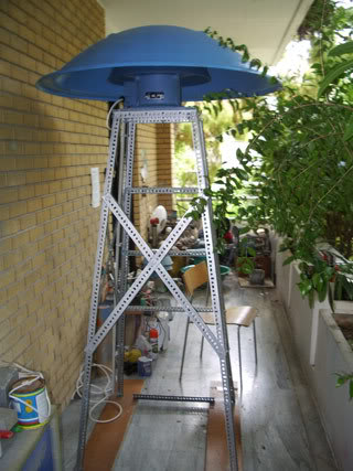 finally my was mounted on the base. I had this DEXION base for many years. On it was sitting a self-constructed siren. Before installing the I had to make it more steady and robust in order to assure the safety of the siren, so I fixed a metal plate 2mm width on the top, and large wooden base plates.
