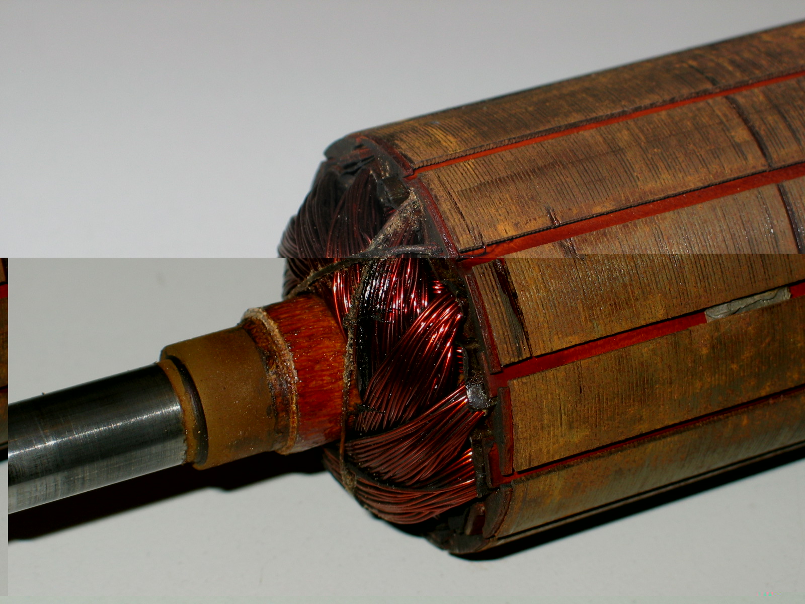 Ich habe mal ein neues Foto hochgeladen mit größerer Schärfentiefe (kann ich als Fotograf ja nicht auf mir sitzen lassen :-) Ich vermute das Rote Zeug zw. den Wicklungen ist harte Pappe ? Habe mal dran gezogen und es ist an einer Stelle etwas eingerissen.