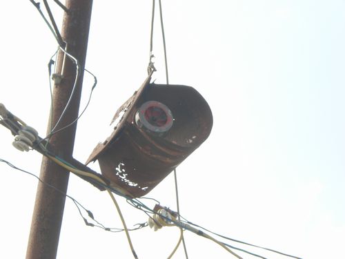 Ich kann zwar kein japanisch, aber mein "Übersetzer" erwähnte was von einer Sirene. Habe mal das Japanische Kauderwelsch in Google-Bildersuche reinkopiert und das ist das Ergebnis. Jede Menge Bilder mit Türme und Maste wo ein Fass- oder Eimerähnlicher Gegenstand dranhängt, wo ein Kabel heraus kommt.