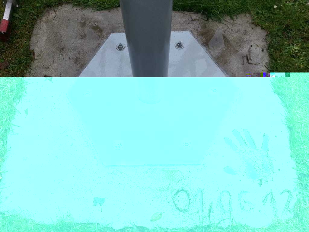 Dann schweiß noch nen Meter Rohr an das Fundament und ne entsprechende Gegen-Platte die deinen Mast auffnimmt, die dann über der Grasnabe rausschaut. Dann kannste unten auch noch deine Dreiecke einschweißen lassen. :-)