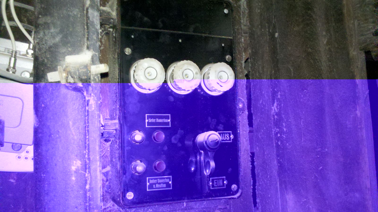 obern rechts Schaltkasten darunter Schütz<br />links Rundsteuerempfänger? (mit Netzwerkleitung)