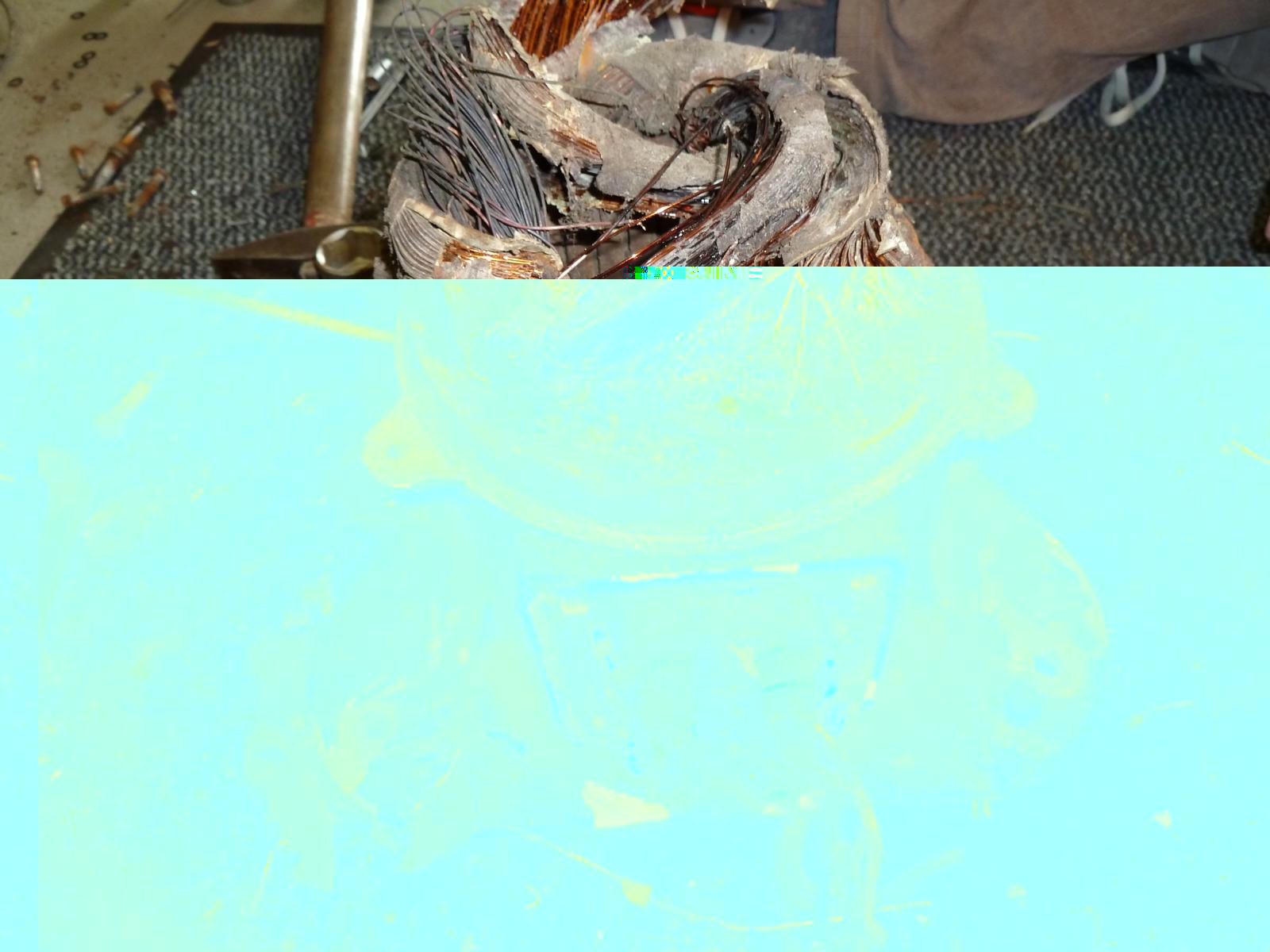 Ne jetzt mal Spaß beiseite. Die Wicklungen haben es definitiv hinter sich. An je einer großen Stelle oben und unten haben die Wicklung gebrannt und sind aufgeplatzt. Totalschaden.
