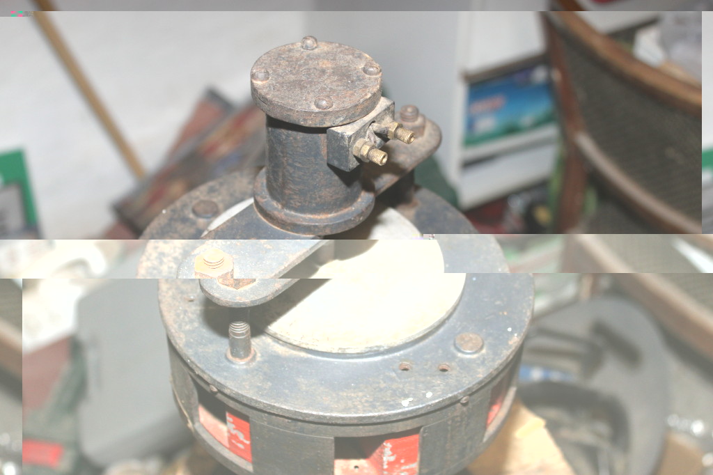 Jetzt aber zur Sirene, ist sicher auch fürs Wiki interessant, trotz unbekanntem Hersteller. Sie ist größer, als ich gedacht hatte. So zwischen S2 und S2a. AmTypenschild, schön aus Messing, sieht man ja schon, dass sie sehr alt sein muss, 1/5PS (109W). Sie stammt anscheinend aus einer Zeit, in der man noch sehr sorglos mit Elektrizität umgegangen ist, man erinnere sich an 220V-Modelleisenbahnen. Es ist auch nicht mal ansatzweise zu erkennen, dass über den blanken Klemmschrauben jemals Klemmkästen waren. Schutzleiteranschluß genauso - ?? Lt. Angabe des Verkäufers stammt sie aus einem Lagerhaus Bj. 1890. Vielleicht gehörte sie ja zur Erstausstattung. Die verbliebene Kohlebürste ist jedenfalls runter, also ist sie ausgiebig gelaufen. Neue Kohlebürsten + Kappen sind bestellt, Lieferzeit 3-4 Tage, vielleicht kann ich schon Samstag einen Probelauf machen. Einen Gehäuseschluß haben weder Morsemagnet noch Sirenenmotor, sie soll auch bis zum Abbau gelaufen sein.