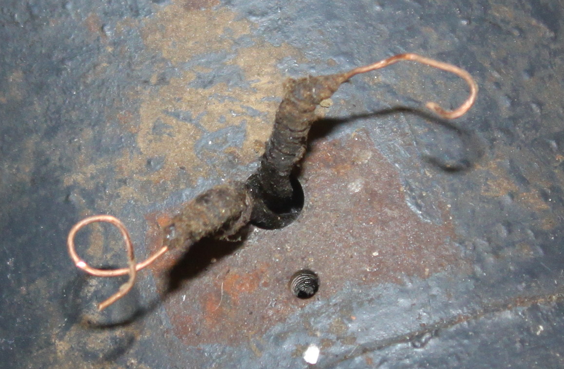 Noch ein paar Worte zum Originalstein. Die Kupfer-Schlitzschrauben wurden eingesteckt, die Muttern angezogen und dann die Unterseite mittels warmgemachter Stopfen verschlossen. Ließ sich alles problemlos trennen.