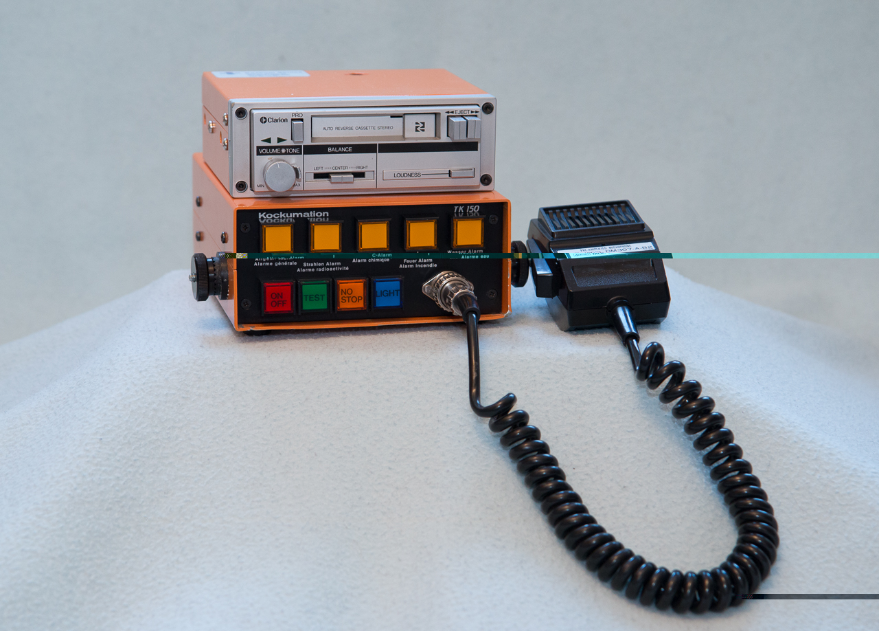 Aufgrund der 4 Schrauben auf der Oberseite des Lautsprecher-Gehäuses im vorderen Bereich und dem "Light"-Taster am Steuergerät vermute ich, dass es das System auch mit einer Rundumleuchte gab.