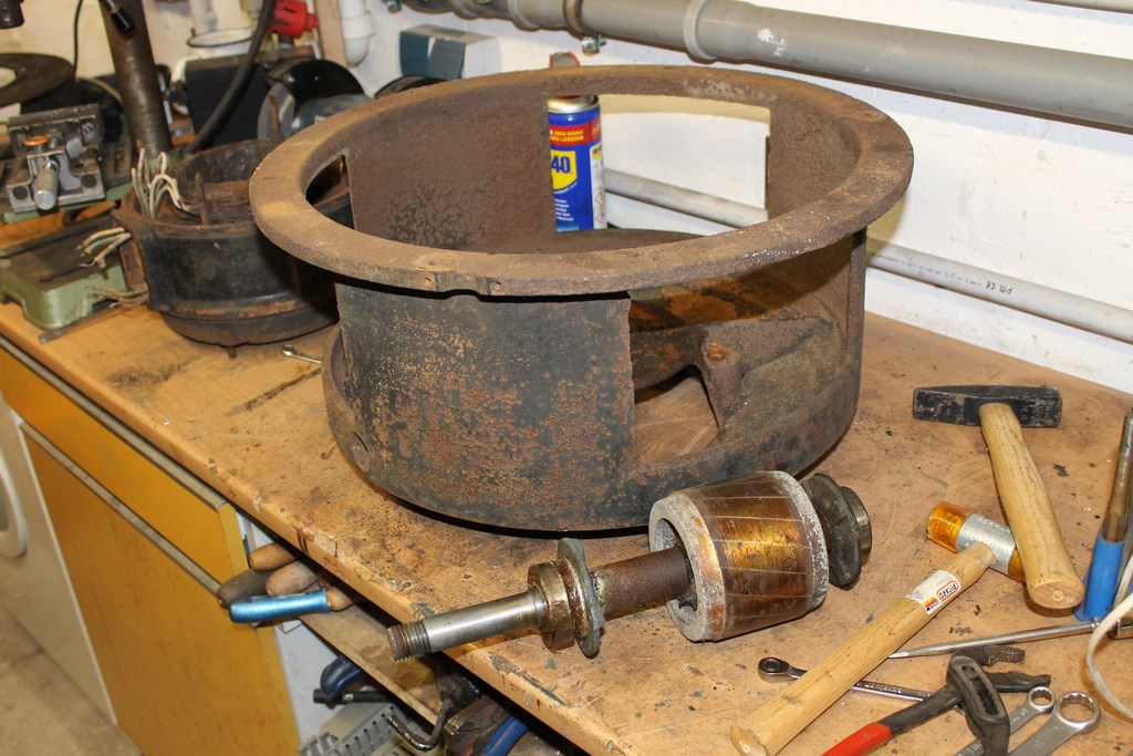 Zack war der Stator runter und so sah der Motor dann aus, immernoch gute 45 Kilo!
