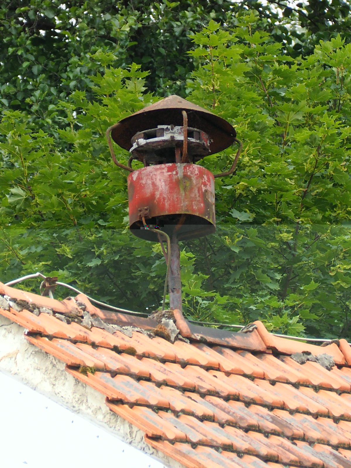 Ich bin mal wieder auf etwas Merkwürdiges gestoßen. Allerdings habe ich hier keine städtische Quelle, darum bin ich mir nicht sicher. Dafür kann man ein Typenschild erkennen, was mich wieder zu einer Sirene tendieren lässt. Das Gerät steht jedenfalls auf einer alten Mühle außerorts in einem Tal.