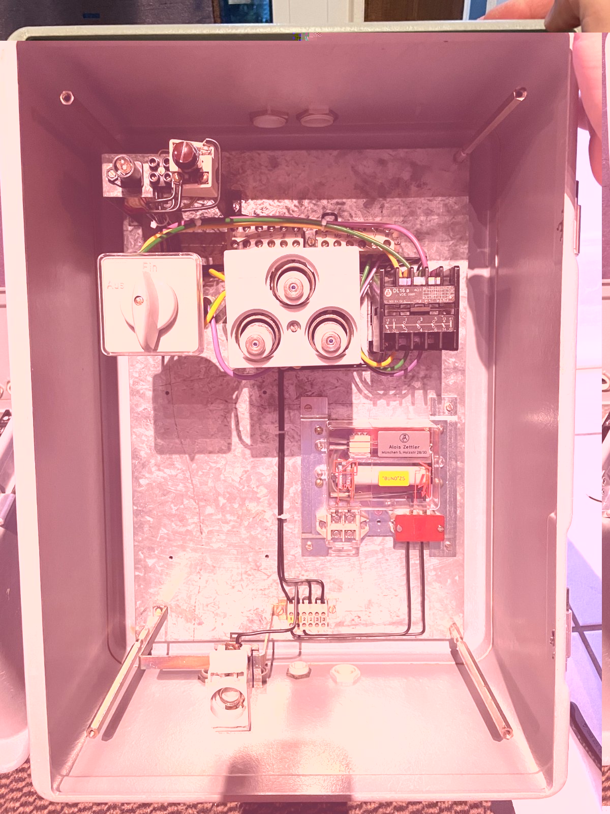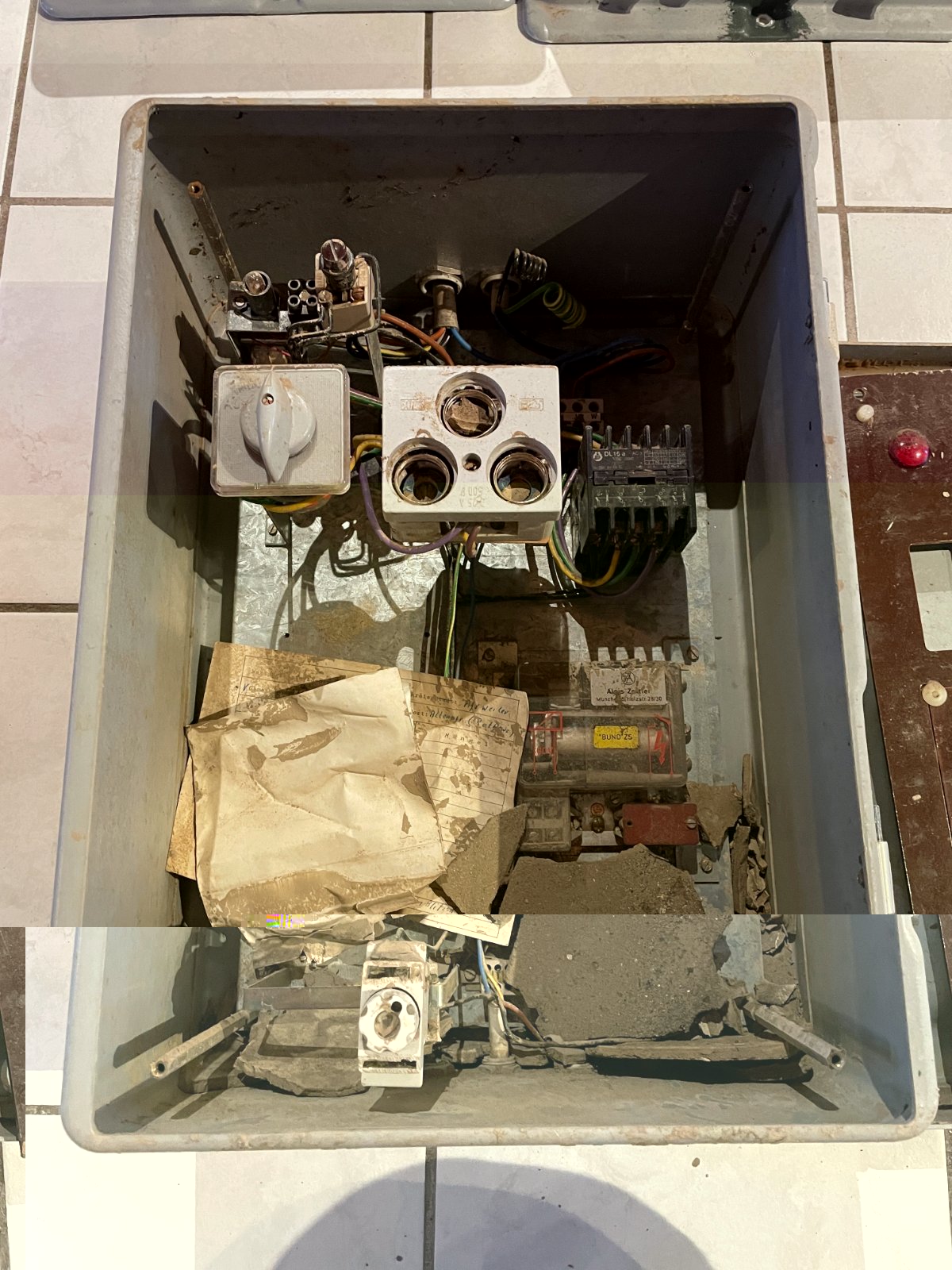 Dann Elektrisches, wie Meldeleuchte, Schütz und Postrelais getestet. Ergebniss: Schützspule funktionierte, die Magnetanker waren zu stark korrodiert.