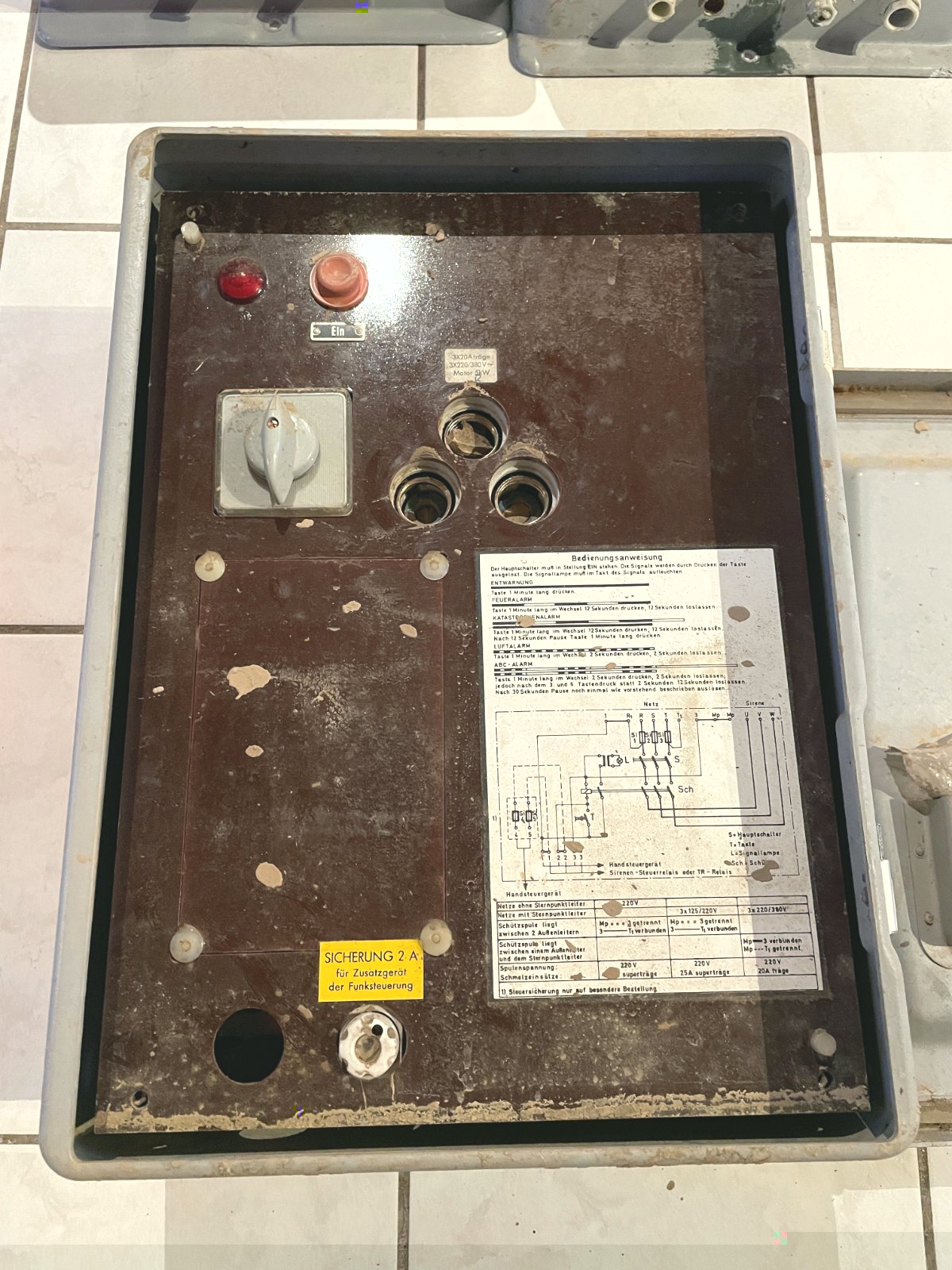 Am Ende hat alles besser geklappt, als gedacht. Selbst der gelbe Aufkleber für die Funksicherung, der auch bei uns überall an den Anlagen ist (kam von Fa. Bode aus Andernach) konnte wieder drauf.