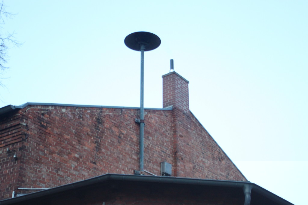 Heute war es dann günstig. Kamera mit Tele geschnappt und rübergedüst. Leider war auch heute kein Kamerad der FW anwesend, also bleibt nur Raum für Spekulationen. Der Anstrich an der (immer noch) DS977 (Fußform) wirkt schon älter, könne also eine durch Hörmann aufgearbeitete sein?! Der Rotor ist heller lackiert, könnte also doch die alte Sirene neu gestrichen sein... Das Dach ist jedenfalls akkurat lackiert, also theoretisch "neu". Der Aufkleber erwies sich als Prüfnachweis, die Firma ist leider nicht zu entziffern. Heißt eigentlich - Kontakt zur FW aufnehmen, hoffen, dass die Fragen beantwortet werden und bei einer der nächsten Proben die sich anbietende Rotoraufnahme machen.
