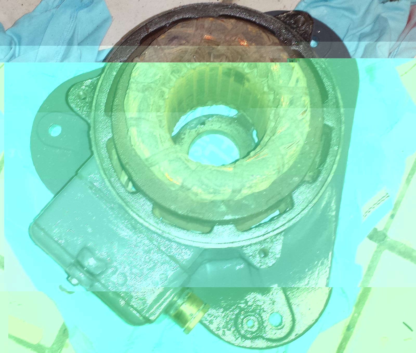 Letzter Arbeitsschritt heute war dann der, dass ich oben den Motorkorb eines defekten Stators aufgesetzt habe. Und bevor nun einer vorprescht und sagt:" Wtf hast du getan?". Diesen Motorkorb habe ich schon so erhalten.