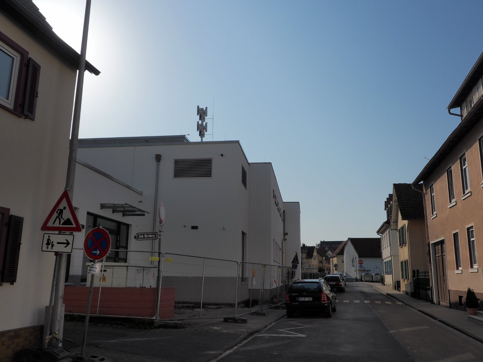 • Dornholzhausen, Valkenierstraße 19: Auf der FFW ein Mast ohne Sirene, daneben eine E 57 auf einer Sackkarre. Auf dem Luftbild vom März 2021 meine ich noch eine Eistüte neben der E 57 zu erkennen, März 2020 nur die Eistüte. Offenbar muss hier nachgebessert werden.