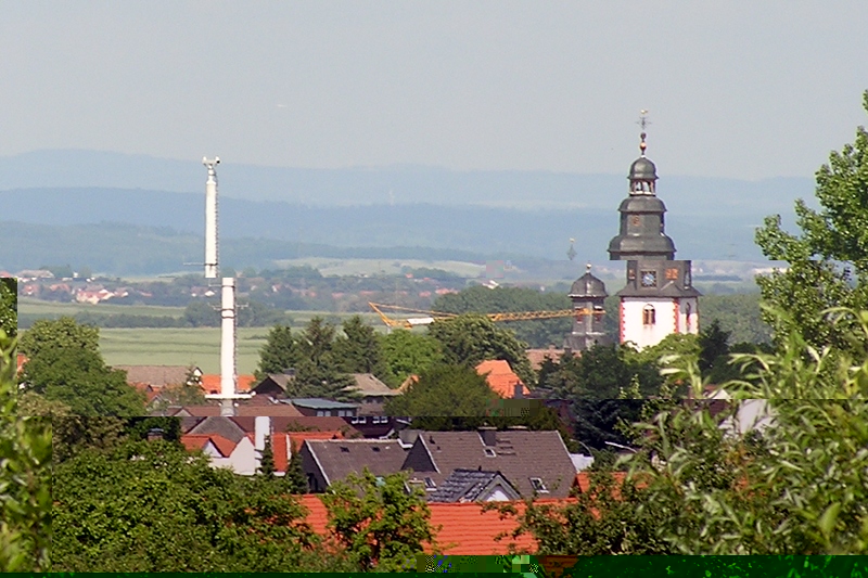 Butzbach Fauerbach E57 dahinter Kirchturm