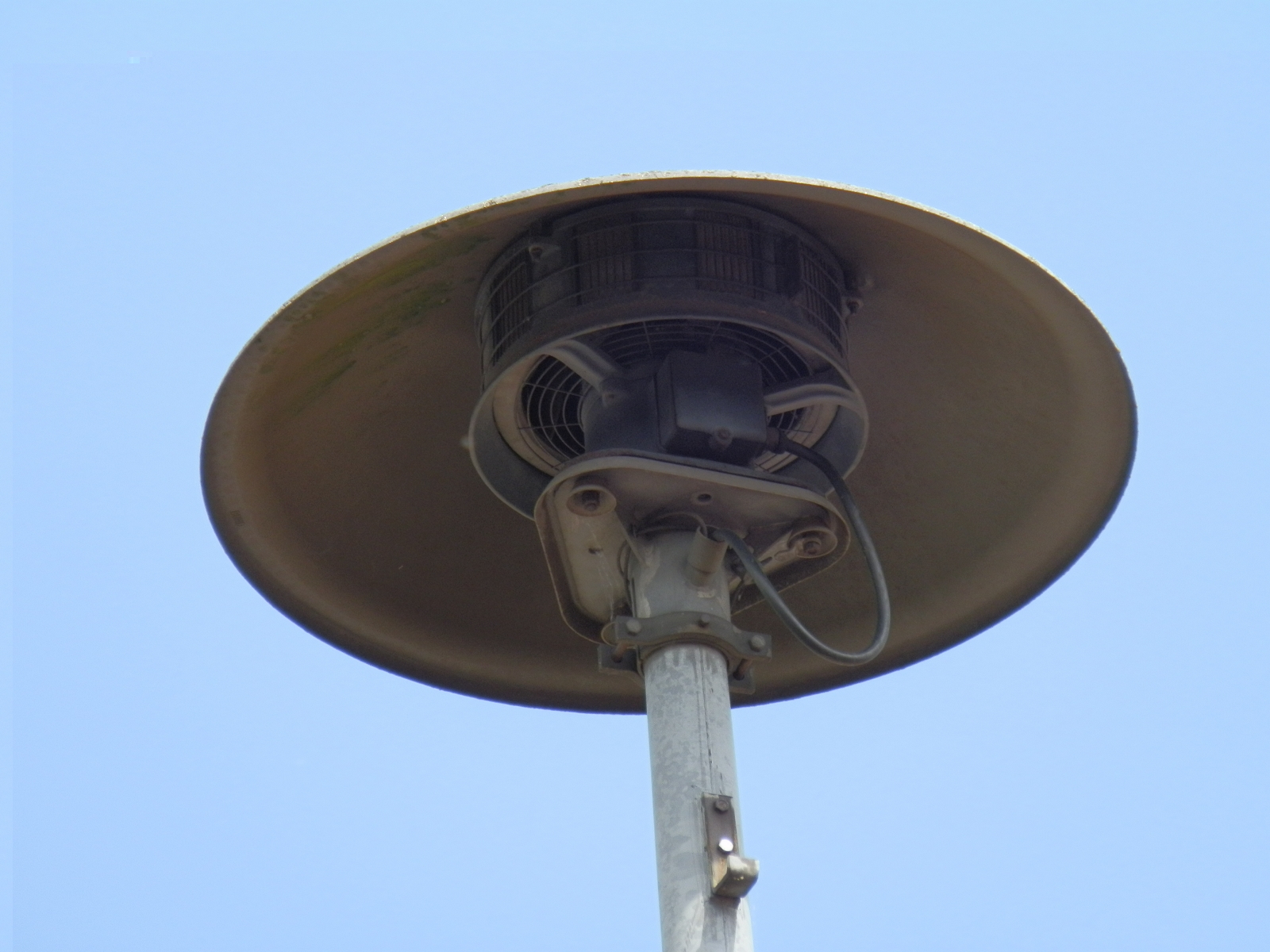 Was mir auch aufgefallen ist, sind die beiden Rohre neben dem Mast, das eine scheint dicker zu sein und es ist eine Sat-Schüssel daran montiert.