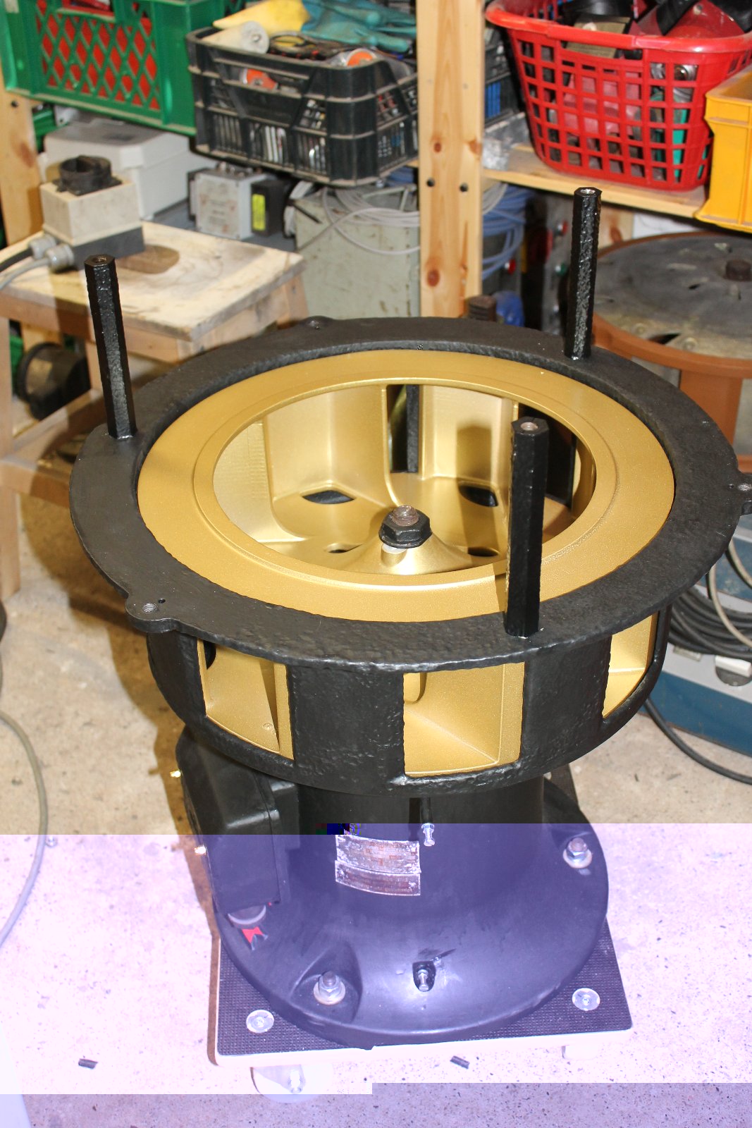 Zusammengebauter Tieftonteil die Haube ist noch ab um das Lager abzuschmieren.