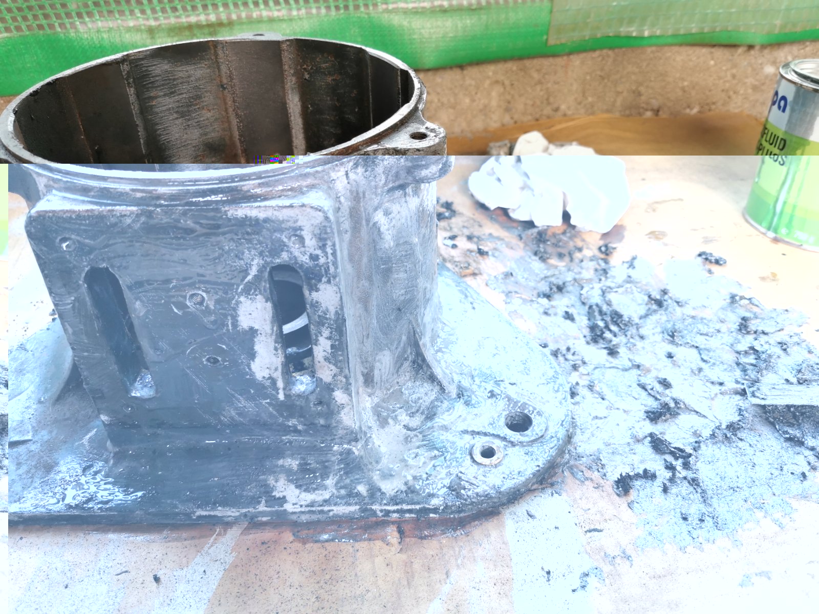 Die weiße Grundierung war ziehmlich zäh aber lies sich im Wasserbad und Stahlbürste leicht lösen.