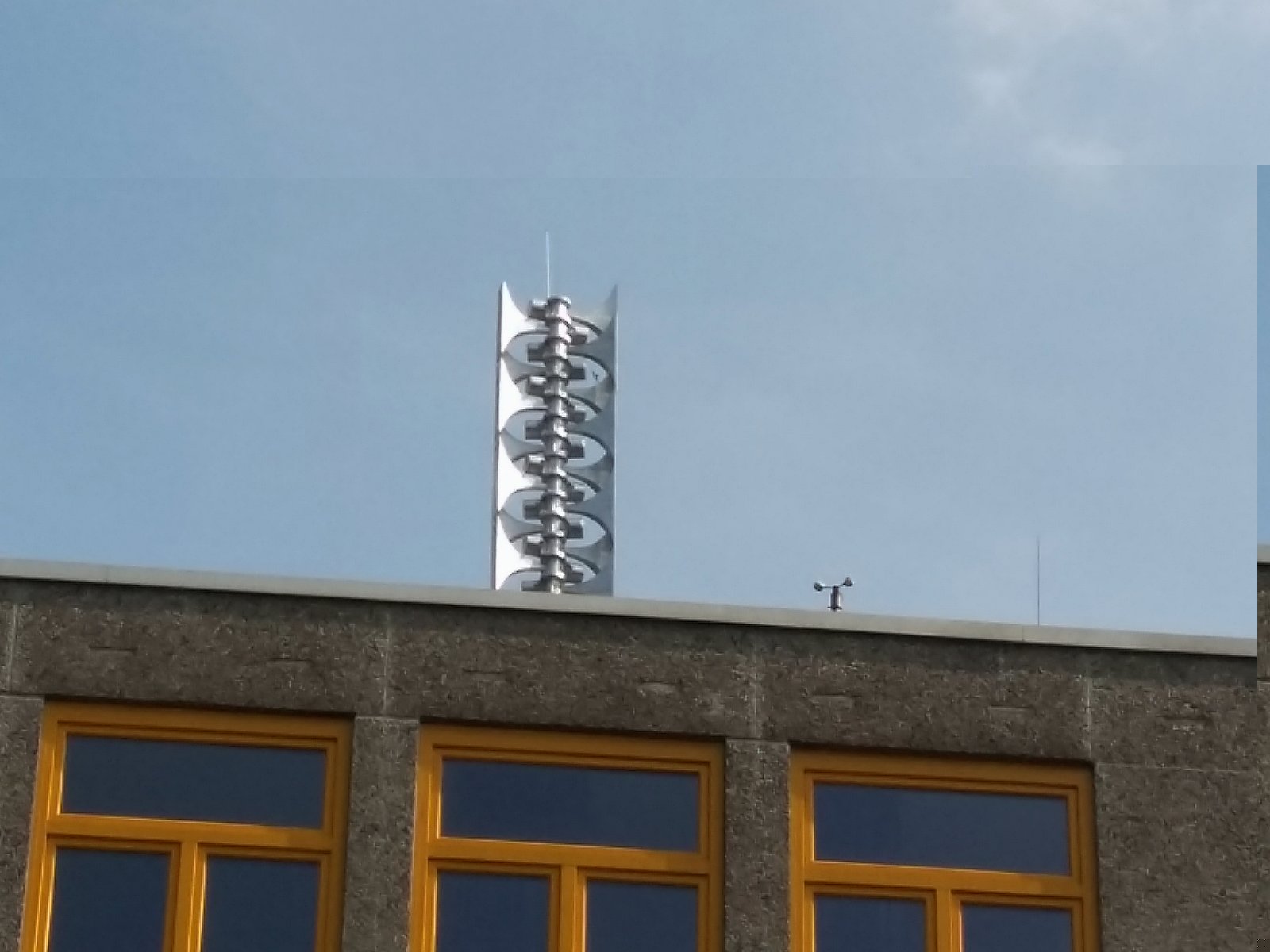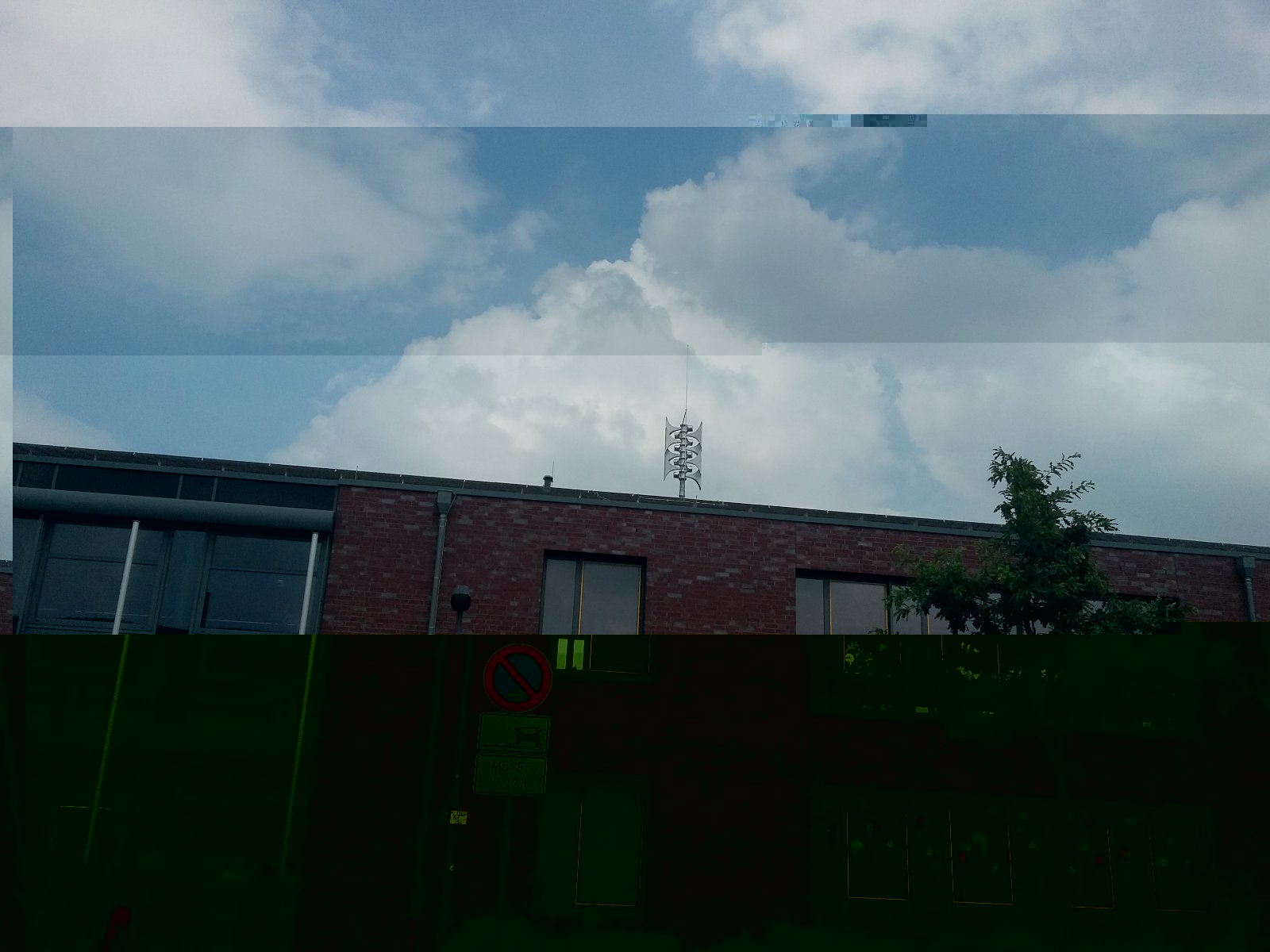 Dieser Standort ist wirklich kurios! Denn in Sichtweite (nur 180 m Luftlinie) befindet sich eine ECN600 auf dem Feuerwehrgerätehaus, die auch erst vor einigen Jahren nachgerüstet worden war. Ob sich kein anderer Standort für die neue HES gefunden hat!? Und warum die 180°-Ausrichtung!? Vier Hörner zeigen genau auf die ECN...