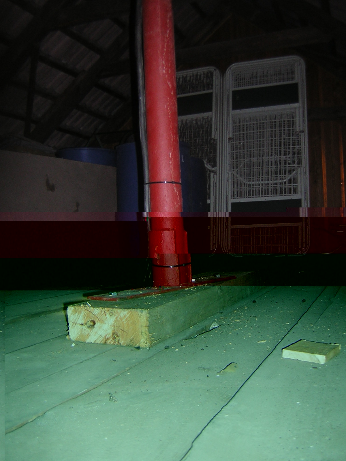 Wir haben den Mast von unten durch das Dach geschoben und unten und am Balken am Austritt befestigt.