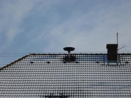 Das Rohr, auf dem meine "Spezialkonstruktion" befestigt ist, hat einen Durchmesser von etwa 15 cm. Es ist bis zur Sirene an die 8 m lang, mit einem Betonsockel und am Dachstuhl mit mehreren Schellen verankert. Hab mich, da ich ja auch meine Zweifel hatte, mit unserem Kommandanten gemeinsam auf der Sirenenaufhängung festgehalten und hochgezogen bzw. gewackelt, was das Zeug hält. Und wenn die ganze Konstruktion bei einem "Kampfgewicht von über 200 kg" nicht zum Wackeln anfängt, dann hält sie einen Tornado auch aus ;-)!