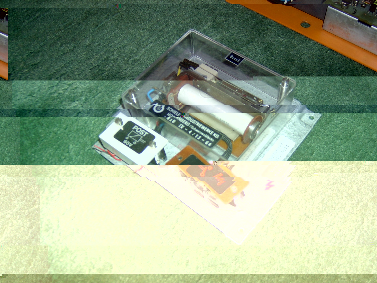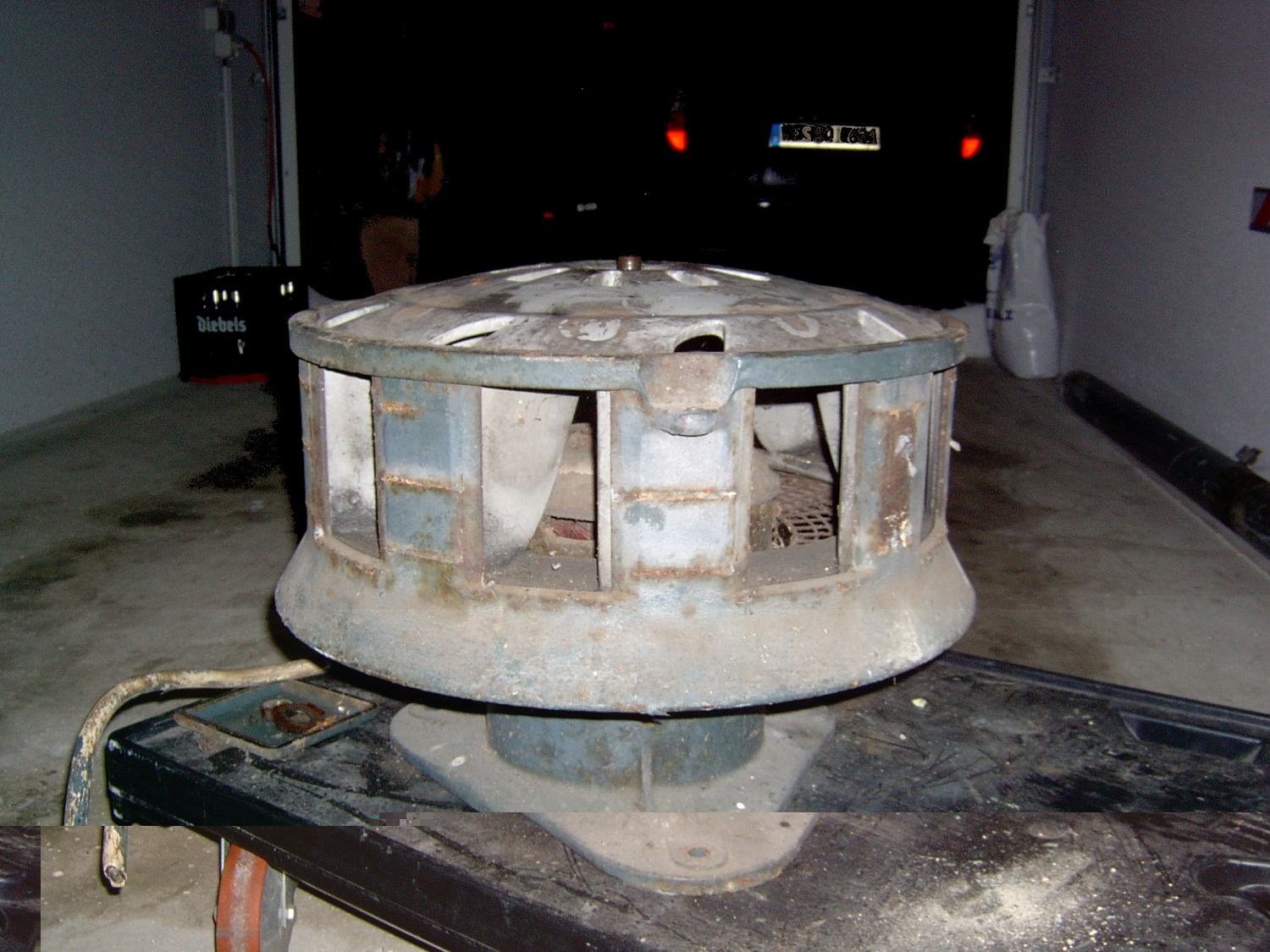 Meine E57 habe ich über ein Onlineauktionshaus erstanden. Über den Zustand wurde nicht viel verraten, außer das zur Sirene noch ein 2,5 m langer Sirenenmast mit passendem Sirenenfuß gehört. Daher bot ich nur einen kleinen Betrag. Widererwarten hatte ich eine Woche später eine Mail im Postfach mit der Gratulation zur gewonnenen Auktion. Der ersten positiven Überraschung folgte sogleich eine Ernüchterung. Nach nochmaliger Betrachtung der Auktionsseite fand ich den Zusatz: "nur Selbstabholung in xxxxxx Südwestpfalz...". Glücklicherweise stand der Weihnachtsurlaub an und somit war schon mal ein Urlaubstag und eine Tankfüllung verplant. Bei der Abholung der Sirene folgten weitere Überraschungen. Die Adresse entpuppte sich als Feuerwache eines kleinen Ortes. Somit konnte ich dann auch die Historie der Sirene erfragen. Auf meine Nachfrage ob eventuell noch weitere Teile der Sirenenanlage vorhanden seien, kramte einer der Wehrmänner in einem Schrottkübel und übergab mir noch zwei Sirenensteuerwerke, Postrelais und eine komplette FWE Einheit. Dank unseres "Familienbombers" gestaltete sich der Transport der Sirenenanlage problemlos.