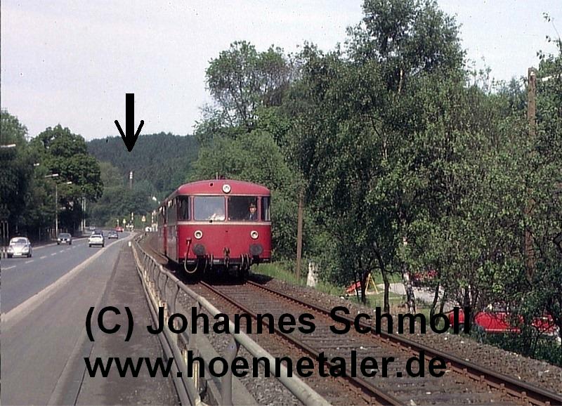 Durch Zufall habe ich bei Drehscheibe-Online ein Foto aus der "guten alten Eisenbahnzeit" gefunden. Hinter der Schienenbusgarnitur zwischen den Bäumen sieht man einen "Mast mit weißer Tonne drauf" was mich von der Form her an eine F71 erinnert. Seht ihr das ähnlich oder könnt sogar etwas bestätigen?