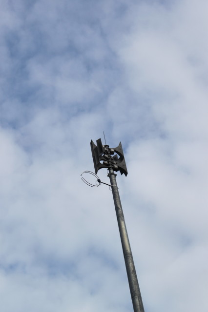 Hey, das ist im Osten, ja. Da waren vorher gar keine Sirenen drauf, die Maste sind neu. Vorher gab es auf Häusern DS 977 oder andere Ostsirenenmodelle bzw. aus Kriegszeiten. Aber NIE E 57!!!