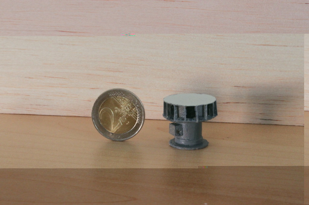 Etwas früher als versprochen der "Prototyp" einer DS977 im Maßstab 1:22,5, hab das miese Wetter ausgenutzt. Eine Serie wird es allerdings nie geben, der Bau ist verdammt fummelig. Nicht die Statorstege haben mich fast zum Wahnsinn getrieben, es waren die Ansaugöffnungen. Ursprünglich hatte ich noch vor, das Ansaugschutzgitter mit 0,4mm Draht nachzubilden, aber ohne ist ja auch vorbildgerecht. Nach rund 5h steht sie nun aber, die Materialkosten liegen umgerechnet im Centbereich. Die relativ hochauflösenden Fotos lassen sie zwar Sch... aussehen, als Entfernungsmodell (wofür sie gedacht ist) ist die Wirkung aber umso besser. Morgen werde ich sie meinem Clubvorsitzenden zeigen, ich hab ein gutes Gefühl, dass sie unseren Bahnhof zieren darf. Können sich die Jungs auch gleich mal nebenbei Gedanken machen, wie man das große Dach mit seiner doch recht eigenwilligen Form hinkriegt.