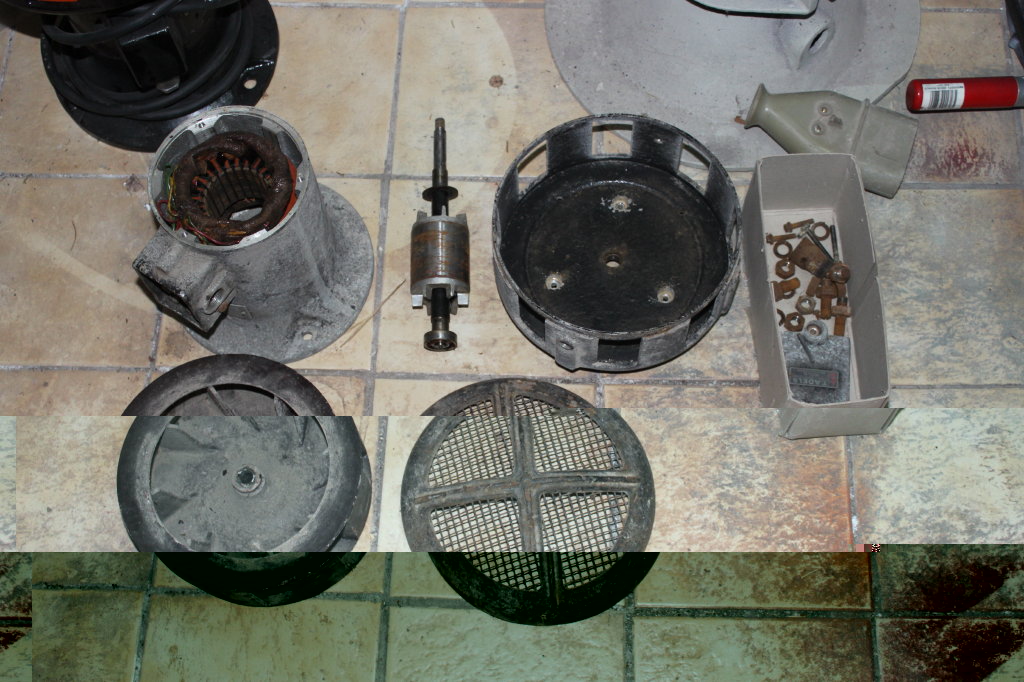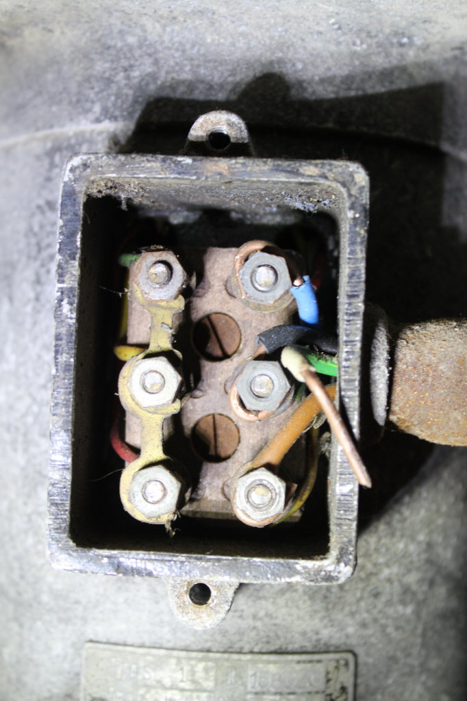 Lange Rede kurzer Wahnsinn, hier ein paar Fakten vor den Fotos: 32cm hoch, Drehstrommotor mit 180W, 8 Ports, 2800U/min. Gut korrodiert aber kein Ärger mit alter Farbe, ist auch schon was ;-) 2 Schilder, ein Typenschild mit den Leistungsdaten ohne weitere Angaben, auf dem Klemmkastendeckel ein Herstellerschild, Fa. T. Adelt, Köln. Da wir hier schon irgendwo mal das Thema hatten - könnte sie z.B. eine Elektror mit Neuwicklung von Adelt sein? Herstellerschilder auf leicht tauschbaren Klemmkastendeckeln sind ja wohl eher ungewöhnlich und auch von Schriftart, -tiefe und Machart unterscheiden sich die Beiden. Euren Meinungen sind gefragt! ;-)