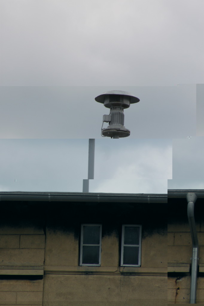 Kann es sein dass die den Motor mit dem Flansch nach unten befestigt haben, die eigentliche Antriebswelle geht ohne Funktion in den Mast und wo vorher der Radiallüfter war wurde der Sirenenkopf angebracht?