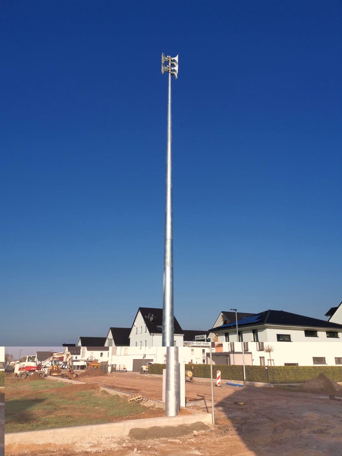 Im Baugebiet im Westen der Stadt, an der Kreuzung Sophie-Scholl-Straße und Gyönker Straße, steht seit kurzem eine ECI 1200 als Mastanlage.
