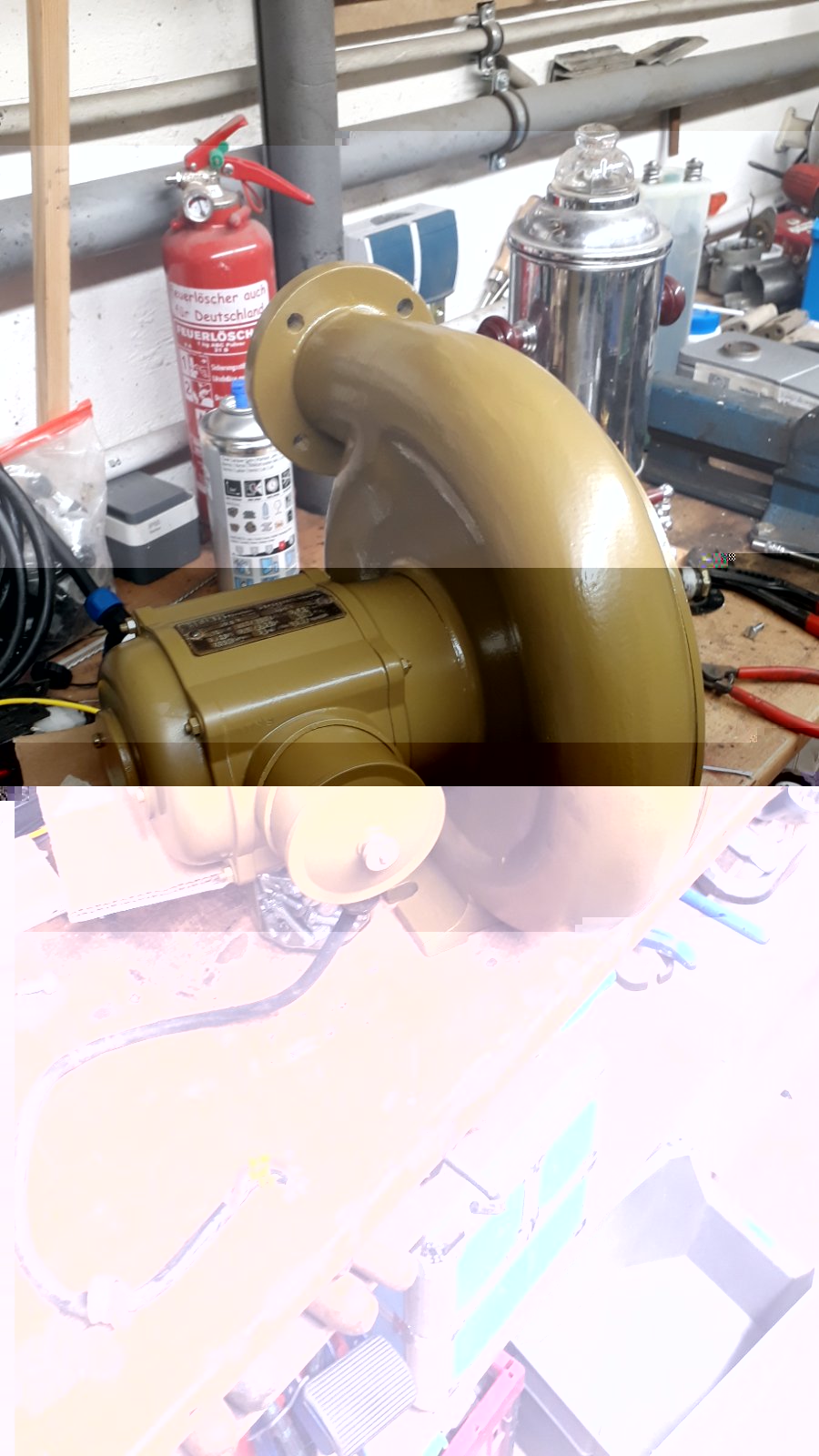 Dazu gehört dann auch das Gebläse, ein Radialgebläse mit 2800U/min Nenndrehzahl und 0,12kW 380V:
