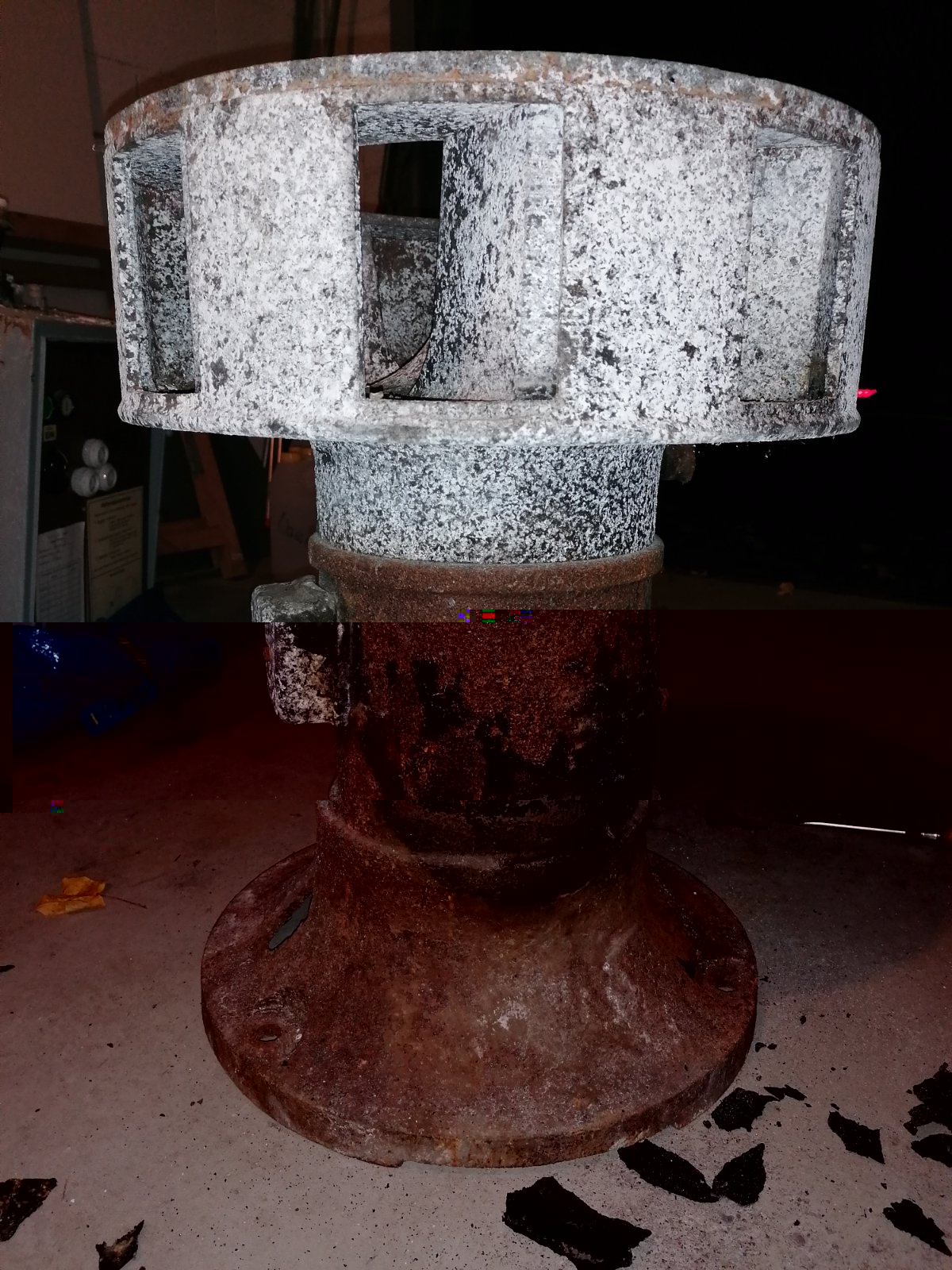 Habe bereits Vergleichsfotos von Elektor und Siemens-Sirenen angeschaut, aber sie gleicht offenbar keiner so richtig. Der Stator hat einen Durchmesser von 42,5 cm, die Höhe mit Motor beträgt 55 cm. Leider ist vom Typschild nur noch ein ca. 5mm kleines Eck übrig, sodass ich nichts über Hersteller und Typ sagen kann. Der Klemmkasten wird mit einer mittigen Schraube befestigt.