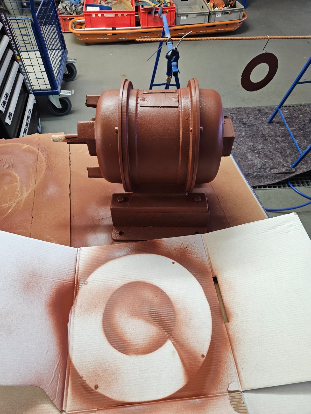 Die Sirene wurde kürzlich in ihre Einzelteile zerlegt (erstaunlicherweise ließen sich sämtliche Schrauben "handwarm" herausdrehen), mittlerweile wurden die Bauteile unter besonderer Rücksicht (v.a. bei ihrem massiven "Wuchtschweißpunkt" am [einzigartigen] Kompressionsring des Rotors) sandgestrahlt und der Läufer von seiner tatsächlich eingebrannten Altschmierung mittels Fliess unter äußerster Vorsicht gereinigt.