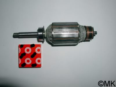 Zwischendurch bekam der Läufer des Motors ein neues oberes Kugelgelenk verpasst. Das untere steckte ja in der Lageraufnahme fest. Die Kupferlamellen des Kommutators habe ich mit Methanol gereinigt.