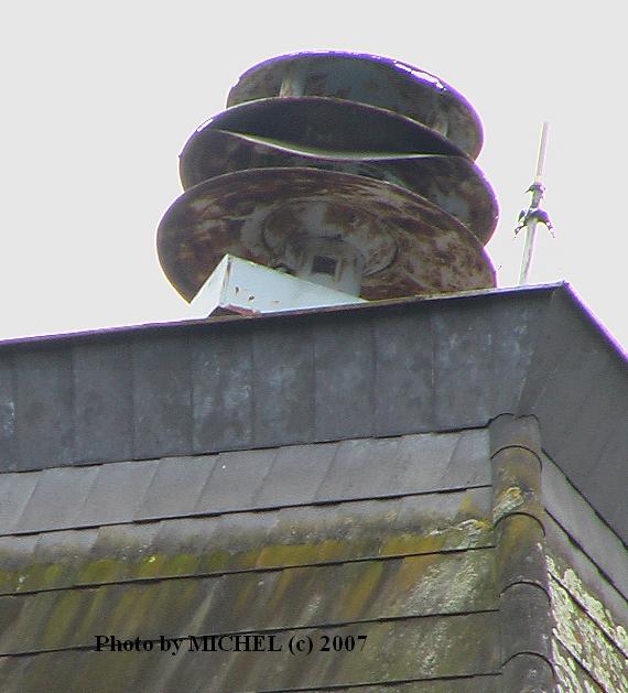 das sieht mir eindeutig nach der Hochtoneinheit einer SIEMENS FmSi40 aus, wobei hier wohl ein Experte für Metallverarbeitung sich handwerlich liebevoll um eine Ersatzkonstruktion bei den vermutlich durchgerosteten Originaldächern gekümmert hat. Es ist einfacher, aus Blech solche flachen Pilzdächer zu machen als die originalen rundlichen Formteile.