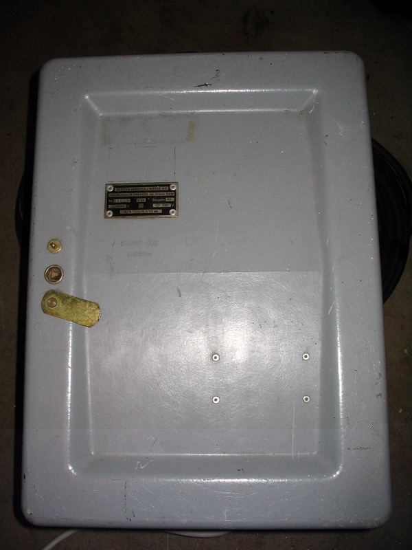 Ein Standardsirenenschütz aus den 50er Jahren. Ist noch sehr weit verbreitet und vielerorts noch zu sehen. Plastenabdeckung wurde naich (schwäbisch: natürlich) für die photographischen Abbildungen entfernt.