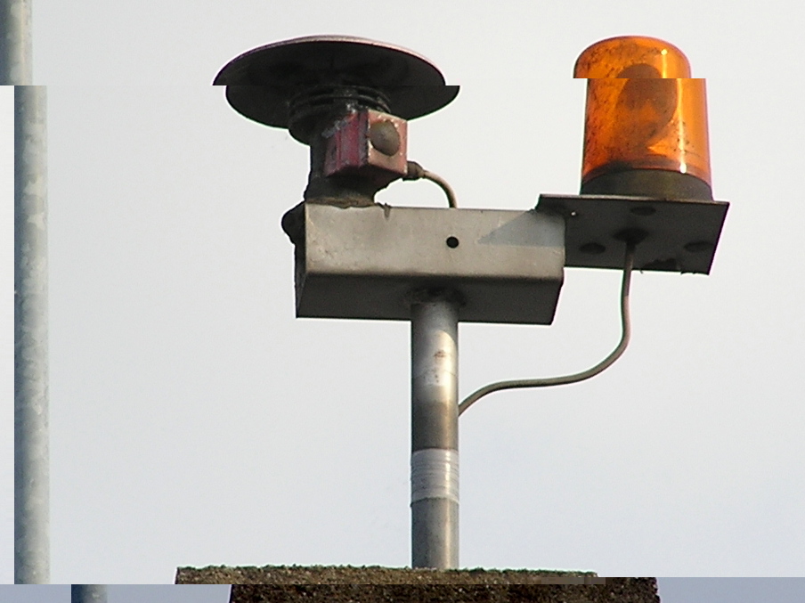 Auf einem (vermutlich) Privathaus thront auf einem Schornstein diese interessante Kombi aus Leuchte und mini-Sirene. Dürfte eine Alarmanlage sein. Könnte aber auch irgendeine Firma mit Notdienst sein, daneben steht noch eine Funkantenne. Feuerwache und nächste E57 sind 500 bzw. 200 Meter entfernt.