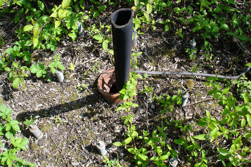 Betonfundament mit den Befestigungsbolzen für den Mast sowie der abgeschnittene Pressluftschlauch, welcher zum Kopf führte