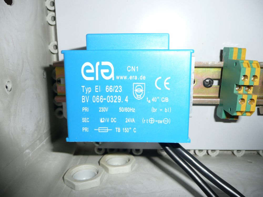 Das 12V Netzteil. Es enthält einen großen Glättkondensator, Gleichrichter  und Thermosicherung.