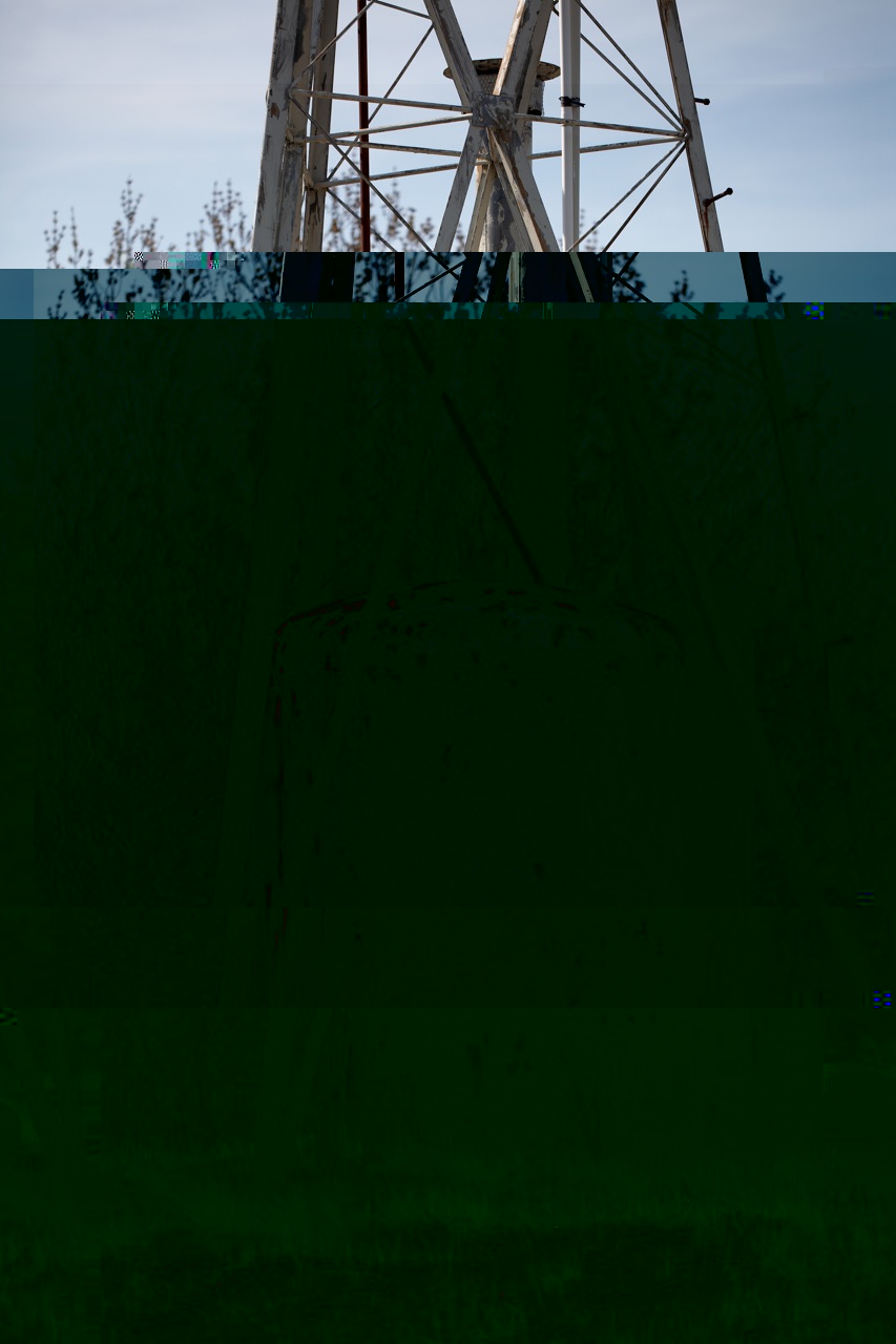 Am Mast ist zwar schon einiges an Farbe abgeplatzt, jedoch ist da noch die Zinkschicht darunter. Und diese ist auch noch fast vollständig heil. Nur am Druckluftbehälter ist schon etwas Rost zu sehen. Der Mast dürfte also noch einige Zeit durchhalten!Sie steht noch, aber das arme Ding gammelt leider so langsam vor sich hin.