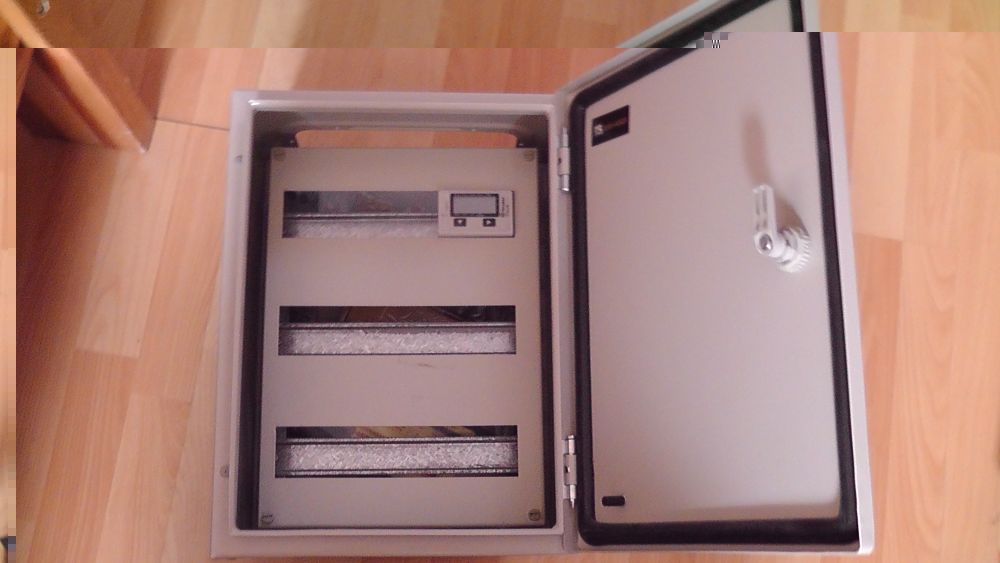Also erstmal wollte ich diesen Kasten hier weil der übersichtlicher ist und eine Abdeckung der Elemente bietet sodass man nicht auf die Kontakte packen kann. Das ist wichtig, da ich einen Messzähler eingebaut habe. Mithilfe von dem kann ich Volt (jede einzelne Phase), Ampere (alle oder einzelne Phasen) und KW (alle oder einzelne Phasen) messen. Das finde ich ein cooles Feature was bisher noch keiner in seinem Kasten hatte. Dazu kommt noch das ich in meine Steuerung SMS empfang implementieren werde. Eine Bluetooth Fernbedienung ist auch eine Überlegung aber GSM ist eben auch aus weiter ferne auslösbar.