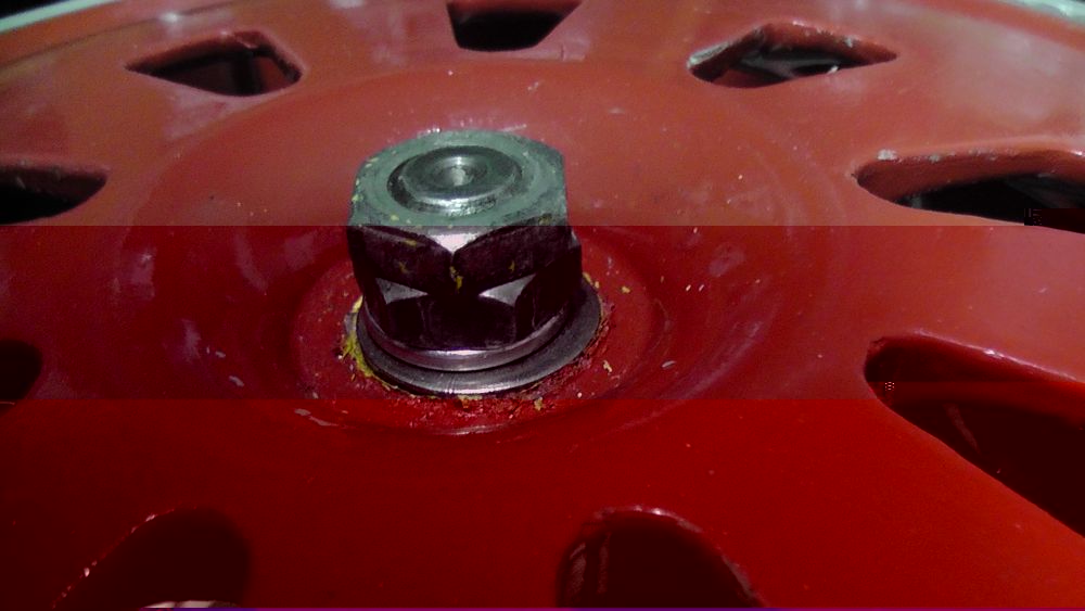 Auch das Laufrad ist endlich drauf. Da ich kein Sicherungsblechen mehr hab habe ich einfach eine Federscheine genommen. Gabs im Baumarkt für 10 cent.