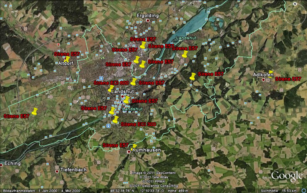 Hier die Sirenen Standorte von Landshut und Kreis.