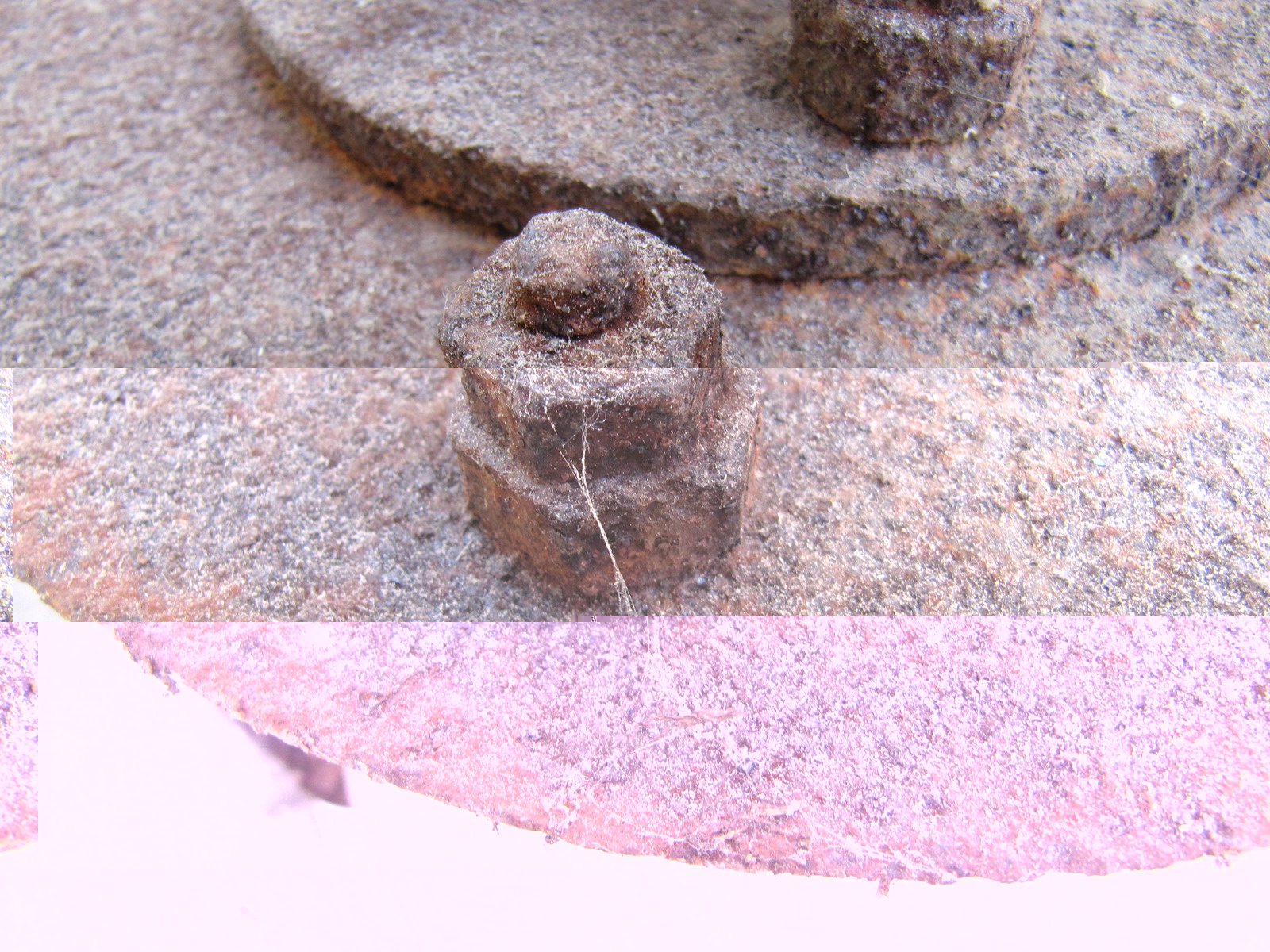 Aber sie hat noch Potential und eine komplett nachvollziehbare History was sie noch attraktiver macht. Die Alugußteile sehen alle noch gut aus, keine Risse o.ä. Nur die Stahlteile sind extrem mitgenommen und der Rotor steckt fest. Im Rotor war auch das scheinbar obligatorische Vogelnest. Zum Glück hab ich einen Druckluft-Schlagschrauber, sonst hätte ich die Verschraubungen zur Ständerfußplatte nie aufbekommen. Die erste Schraube der Dachhalterung ist auch schon abgebrochen aber ich werd die 3 Schrauben ganz abflexen und glatt verschleifen. Kommt eh kein Dach mehr drauf. Die 3 Schrauben der Rotorabdeckung sind auch weggerostet. Die bohre ich auf und schneid dann entweder neue Gewinde oder niete die Abdeckung dann wieder fest.