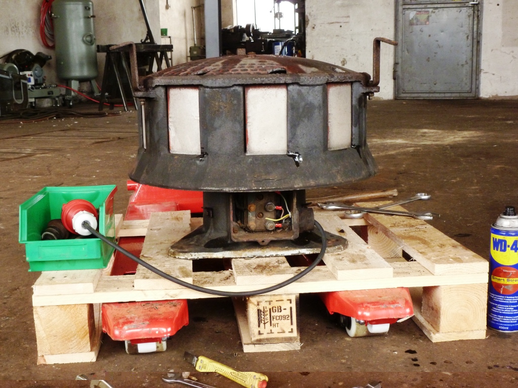 Muß sie erst mal irgendwie befestigen weil die Palette auf der sie steht natürlich schwingt.