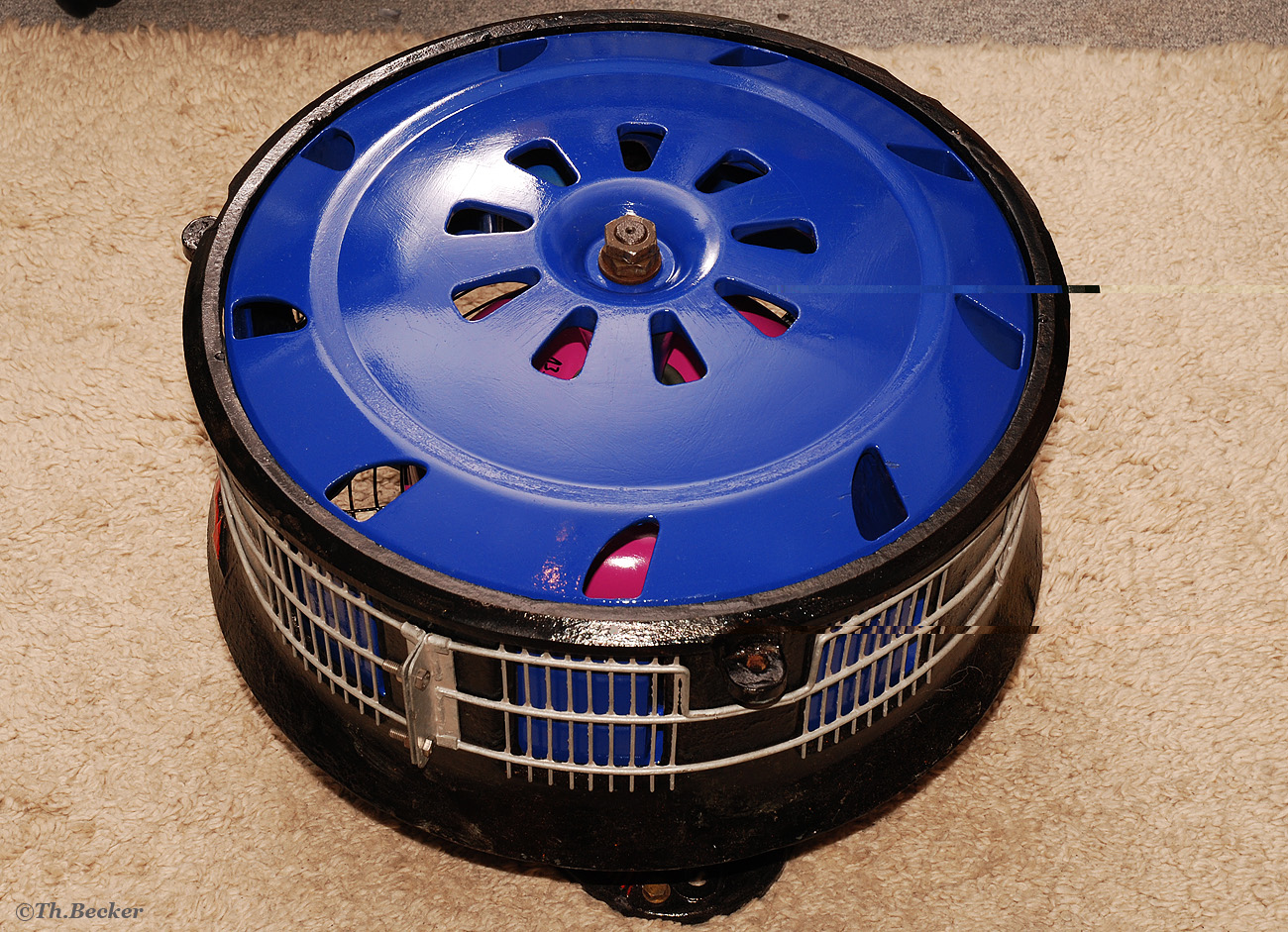 Im Anhang übrigens der Gegenstand der Versuche. Rotor frisch lackiert in Ultramarinblau (THW-Blau).